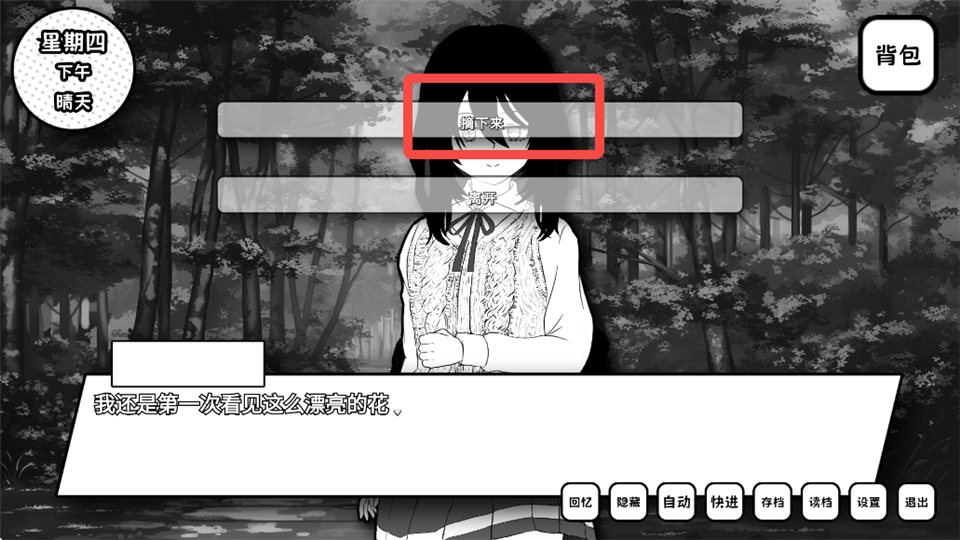 2、在山上看见白花时,先建议采集,将会有结局分支。
