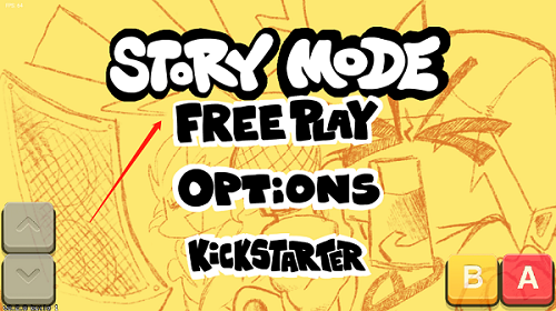 1、第一步打开游戏,点击左侧上下键选择故事模式,点击右侧A键确定。