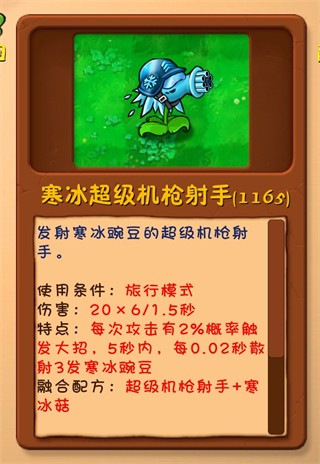 融合配方:超级机枪射手+寒冰菇