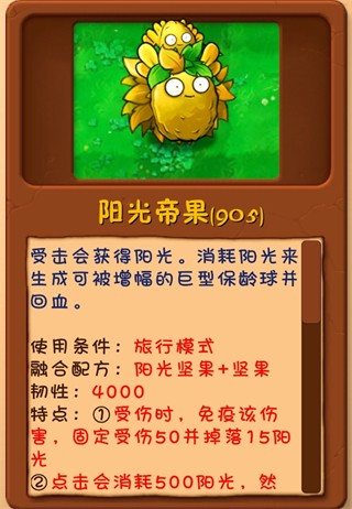 核心能力:拥有4000点韧性,受伤时免疫该伤害并固定掉血50、掉落15阳光;点击消耗500阳光可生成巨型保龄球并回血,兼具防御、产阳光和控场能力。