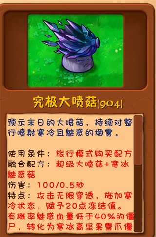 融合配方:超级大喷菇+寒冰魅惑菇