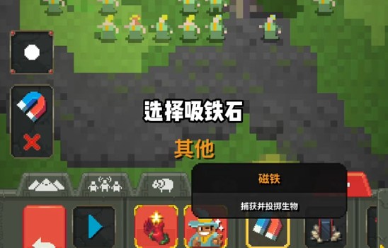 6、点开其他列表,选择吸铁石,将所有精灵吸附至火山口并取消;