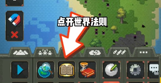 8、点开世界法则,点开左下角紫色图标,点击中间眼睛两下即可解锁所有生物;