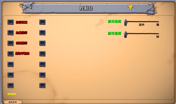 2、取完后点击控制台,玩家可设置自动收集、血量显示等操作,以及调整游戏难度和速度;