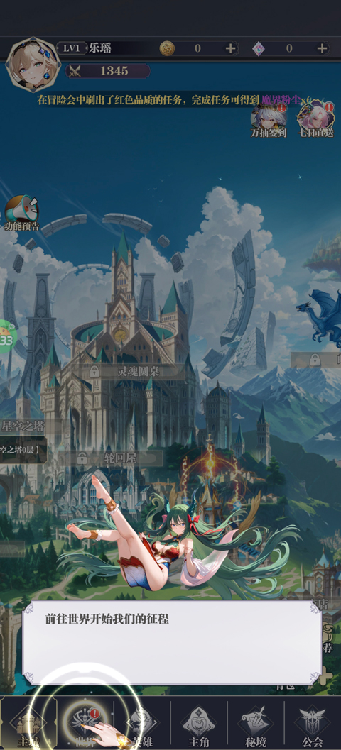 3、进入游戏后会有个新手教程,跟随引导点击世界;