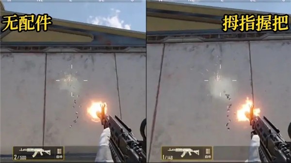 拇指握把:开镜速度快,垂直后坐力和晃动控制优秀,突脸反杀和近战操作利器。