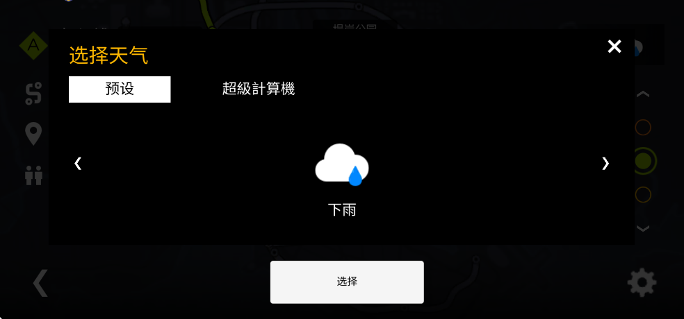 当你在游玩【司机模式】或者【乘客模式】时,你将会面临天气的挑战,但你可以自己改变天气