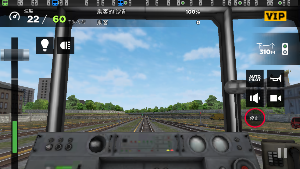 8、进入游戏左侧可以控制地铁行驶的速度,右侧切换视角、喇叭等;