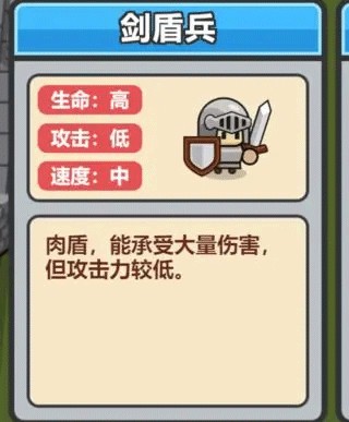 说明:剑盾兵常用于抵御敌方前排的推进,充当保护作用。