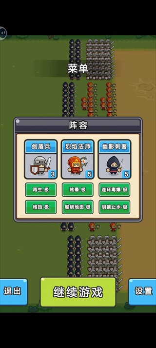 1、每次可以让玩家选择三种兵种的一个,根据战场组合最优阵容。