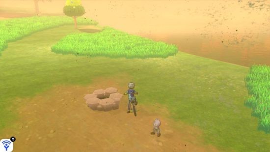(沙尘暴影响,洞有点不明显,在右边两棵树中间)普通系,出奇诺栗鼠、伊布、卡比兽