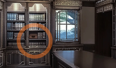 捡起地上的木偶,获取窗台上的木鸟,点击书柜下的天平图案,将砝码放上去