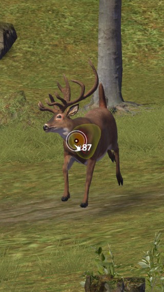 2、当猎物在准星上时,松动屏幕进行射击,击中猎物的不同位置会造成伤害,伤害达到击败要求则为狩猎成功;