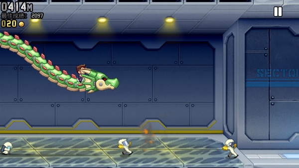 火箭飞人安卓版是一款飞行闯关题材的冒险射击类游戏。玩家在游戏中将成为一位特工,你要潜入基地中夺走科学家研制的火箭飞行器,开始自己的刺激的逃生冒险。你获得火箭飞行器后就能使用,飞行闯关将下方的科学家击倒,还要小心关卡中的障碍物和随机出现的激光。喜欢飞行闯关的玩家快来下载游玩吧!