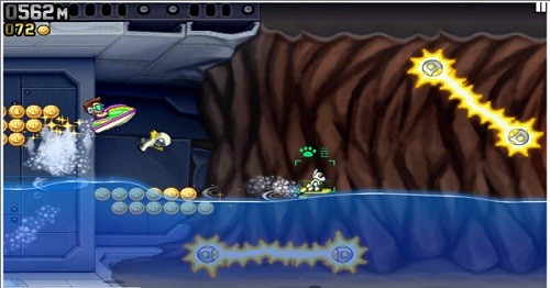 2、跳跃机甲:这个装备的叫法会有所不同。小编喜欢叫它跳跃机甲。因为,这个道具的跳跃性很好,而且滞空能力也比较强,因此,优点在于特别适合吃金币。不过,它的飞行高度也仅比摩托车高一点,所以骑乘时需要特别注意低位的电火链。
