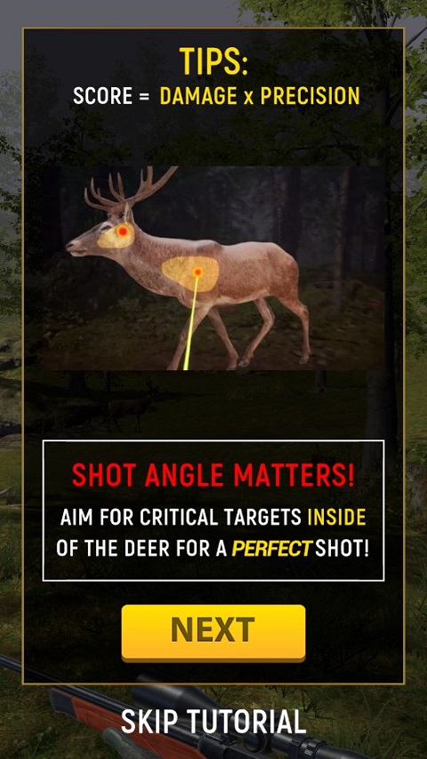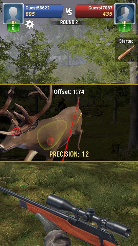 2、按住不动,拖动瞄准镜指向猎物的身体部位,松手即可开枪。