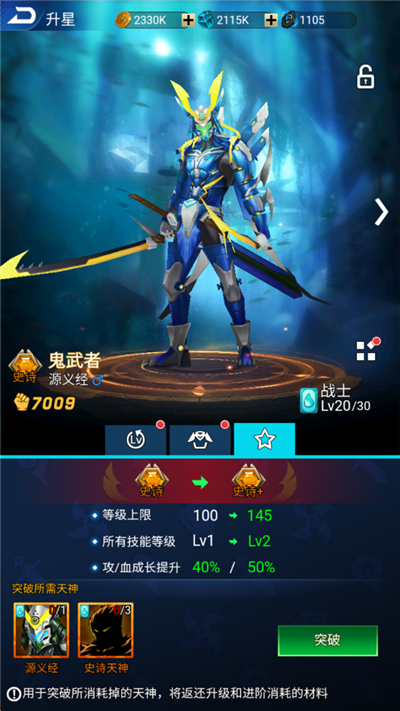 2、天神突破至史诗+品质后可以进行天神转移、天神回退,转移后将会失去原有天神;回退返还所有天神材料,80%的进阶石,但不会返还勾玉。