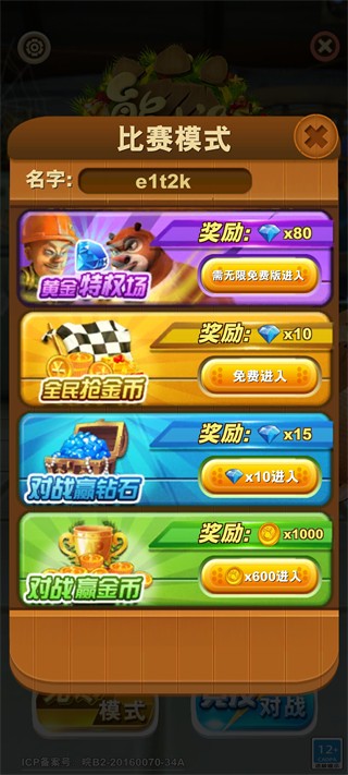 竞技对战模式包含多种精彩玩法,如“黄金特权场”和“全民抢金币”等模式。每场比赛中,你将与其他玩家一同竞技,争夺各种奖励,包括钻石、金币等丰厚奖品。