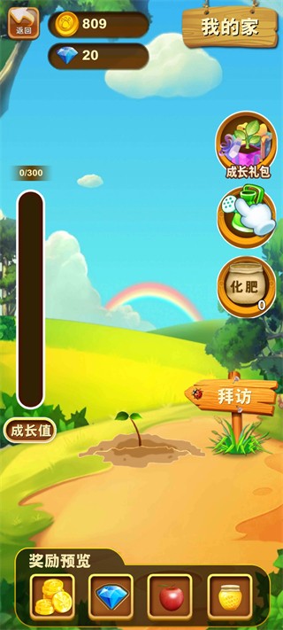 你可以在“我的家”系统中进行多种互动,包括种植、浇水、施肥等。这些互动将提升你的成长值,解锁更多奖励。完成任务后,你将获得金币、钻石、苹果、蜂蜜等丰富的奖励,用来提升游戏进程。
