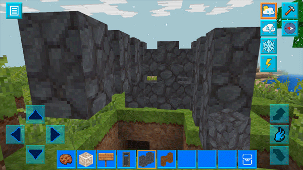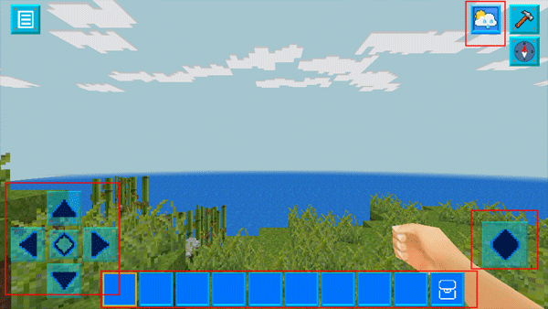 2、等待一会儿后就进入到创造模式世界里面。左右两边的按钮显示的是移动方向键和跳跃键。