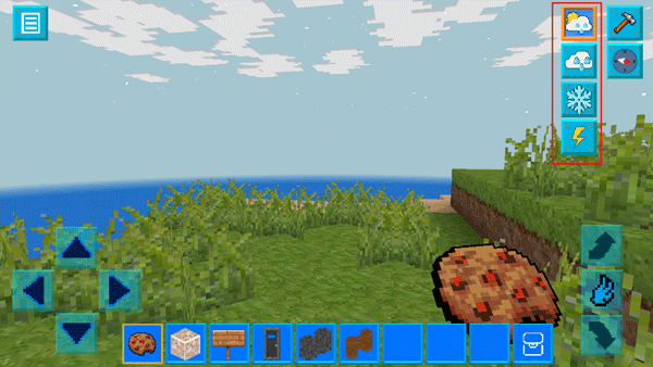 3、点击右上方的天气图标,可以调整这个世界的气象,如闪电、雪花、下雨等。