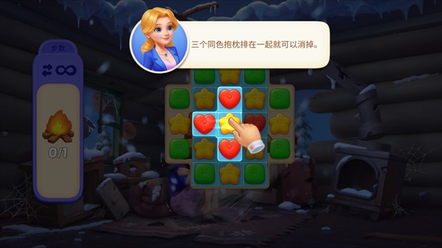 1、在游戏中装饰你的豪宅,三个同色抱枕排在一起就可以消掉;