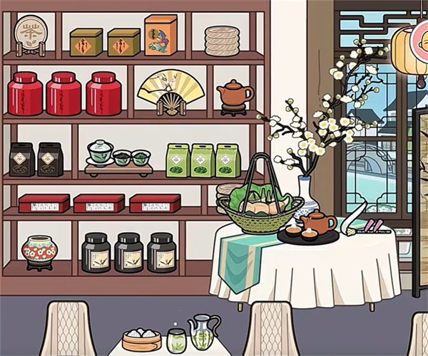 3、屋内陈列着各式各样的茶器与茶品,靠窗设有品茶座位,一边赏景一边喝茶,氛围十分雅致治愈。