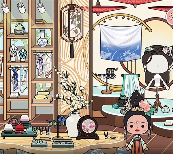 11、进入后可以看到陈列的丝巾、饰品、发型以及服装。