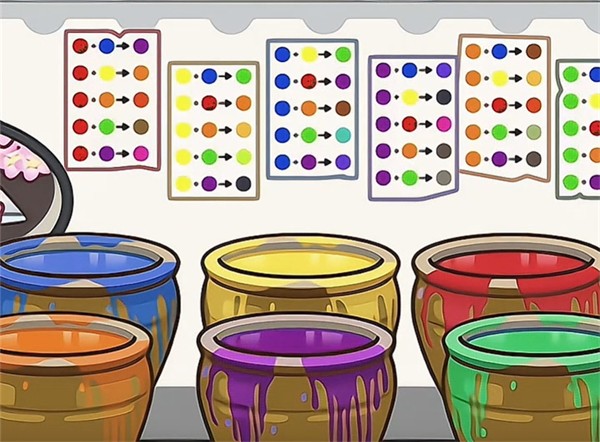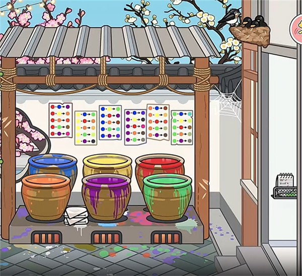 14、晾晒区旁边就是染缸,共有六种不同颜色,墙上还贴有详细的染色公式。