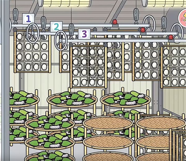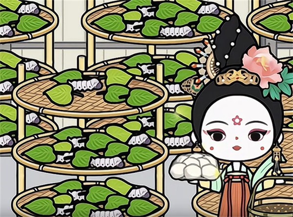 16、最后是养蚕区域,蚕宝宝吃完桑叶后会变成蚕茧,可带到前面的机器中加工成蚕丝。