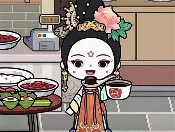 8、包粽子旁边的甜茶店中,龟苓膏可以直接舀着吃。