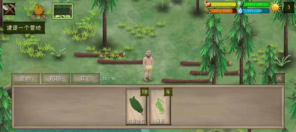 2、等材料收集到一定程度就可以做陷阱了,不会狩猎的萌新们可以先做椰子陷阱,大渔网,双弹绳套陷阱,不要超过8个哦,不然容易坏,放在左右两边的竹林就可以了。