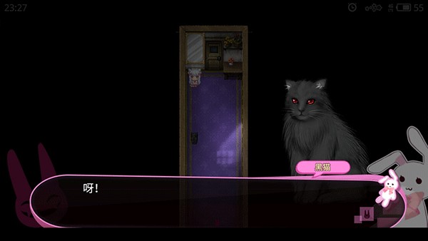 2、喵可莉的兔玩偶(普通结局)喵可莉死亡。条件:在“大老鼠画室”(深渊之眼后面)选择先去找黑猫。