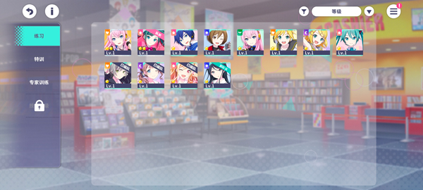 育成分为提升角色等级的「练习」、提升★4及★3角色等级上限的「特训」、提升能力值及获得异色版舞台服(仅限附带服装的角色)的「Master Training(マスタートレーニング)」。