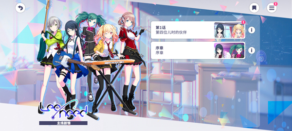 游戏按照团体数量划分出六条主线故事。玩家只要在主页面中与各团体成员互动,或是使用该团体成员进行节奏游戏,便可获得团体EXP。提升至特定等级后便会解锁故事内容。