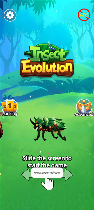 1、首先进入昆虫超进化游戏手机版主界面,如图所示滑动屏幕即可开始游戏。