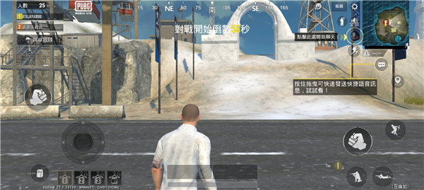 12、右上角是小地图,玩家可以根据地图标识寻找方向,下方倒计时是缩圈倒计时,玩家需要点击地图查看安全区并到达;