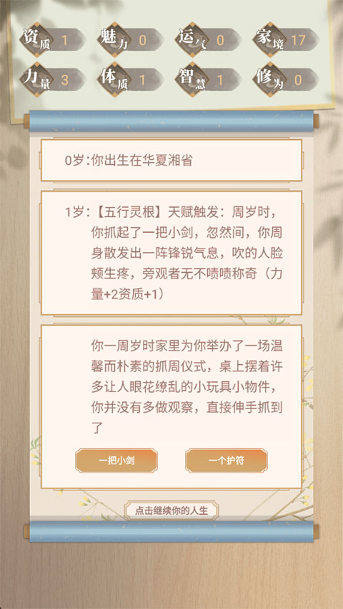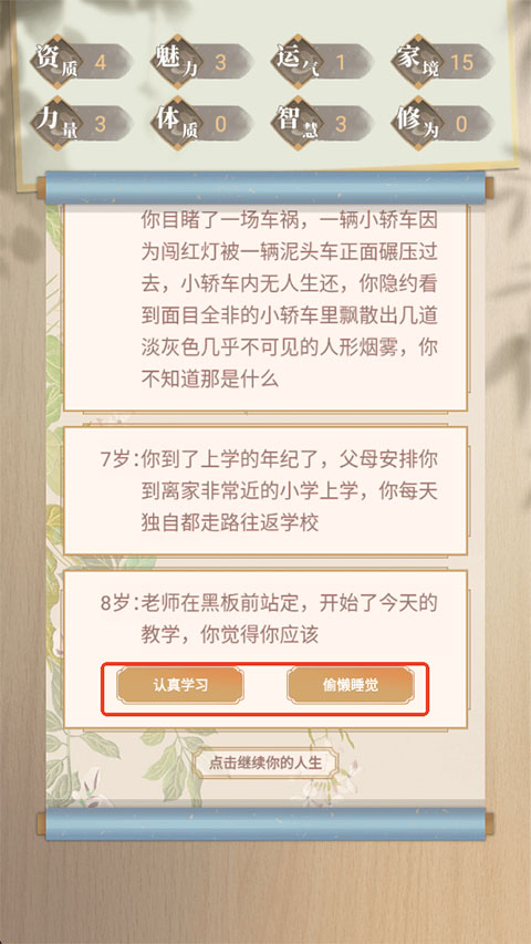 3、然后就可以点击屏幕来继续人生。
