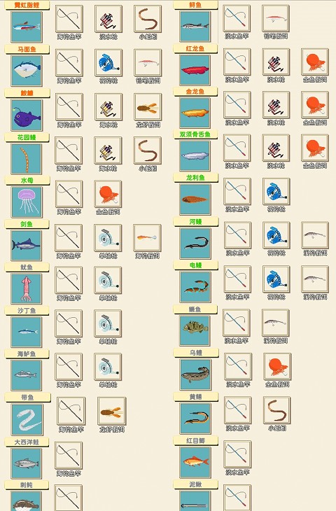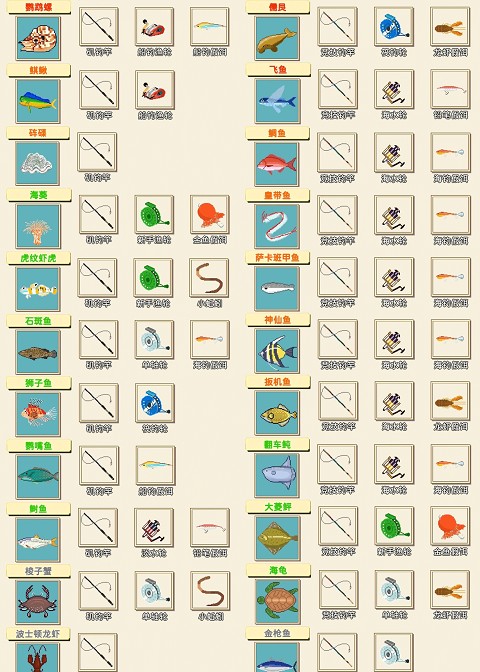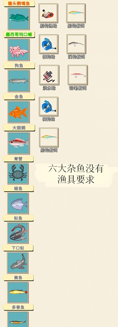 3、钓鱼全图鉴(共72种)