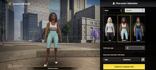 3、进入游戏后,创建角色,选择性别、年龄等,选择好点击“create”进行创建。