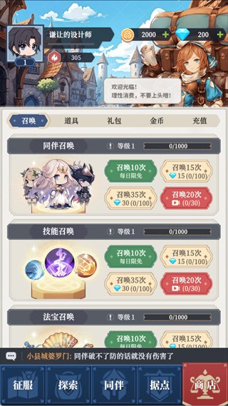 商店召唤玩家可利用每日免费召唤次数,获得强力角色与技能,增强战力和战斗能力。