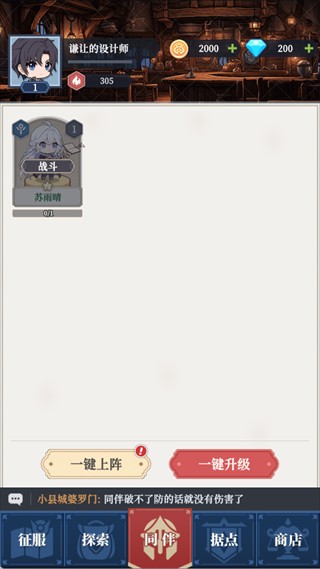 同伴系统是提升战力的关键。已解锁的同伴可一键上阵和升级,成为玩家征战四方的核心伙伴。