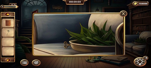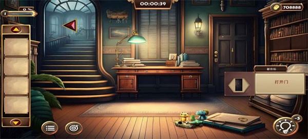 2、在客厅周围寻找并收集戳、钥匙和书籍。