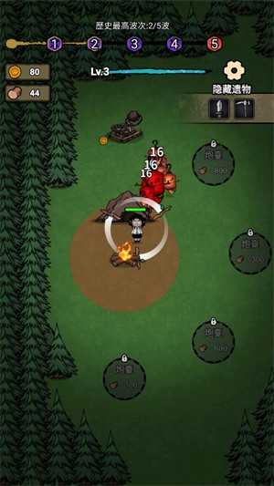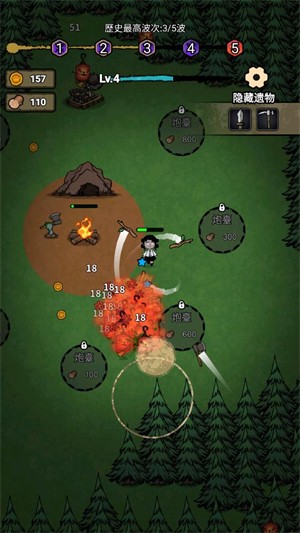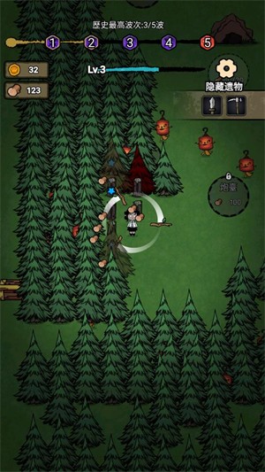 2、进入关卡后滑动屏幕控制角色的移动,靠近树木会自动攻击来获得木材和经验。
