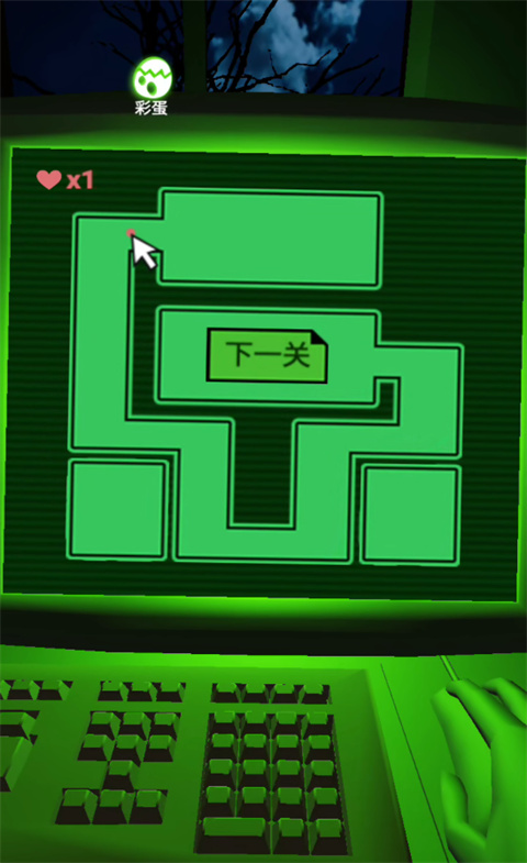 2、游戏模拟了在电脑前操作鼠标的场景,玩家通过触摸屏幕来控制鼠标光标在迷宫中移动