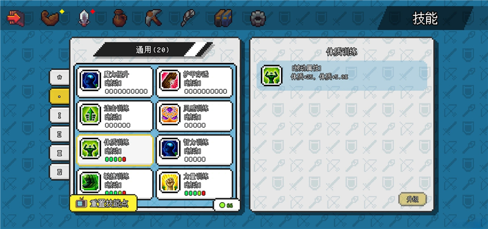 通用加一点全能训练,敏捷、力量加满,体质加4点。