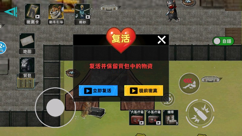 4、即使受到伤害导致死亡,我们可以点击【立即复活】,无需看广告就可以继续进行游戏