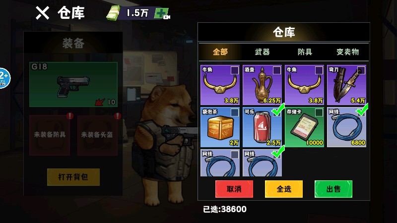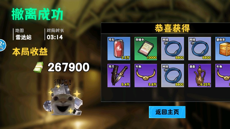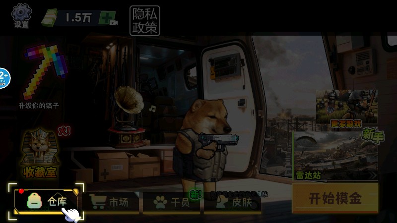 7、返回游戏主页,点击左下角【仓库】,可以前往背包将我们的战利品变现