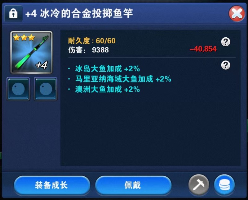 然而我必须说,在突破强化开放後,如此的数值可能新人期还勉强堪用,但对於高阶玩家来说,实已不敷对付全新的游戏环境了,因此进行突破强化有其绝对之必要,突破强化从强化+10的「大鱼加成/OO大鱼奖励」为基础值,每往上突破一级,能力增加0.2%。我建议只要是用来拚大鱼的装备,最低至少也要突破强化至+13以上,可以的话要+15以上。