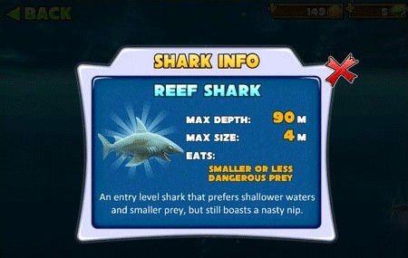 4、升级鲨鱼的能力,可以获得金币来升级速度、鲨鱼以及撕咬的能力。